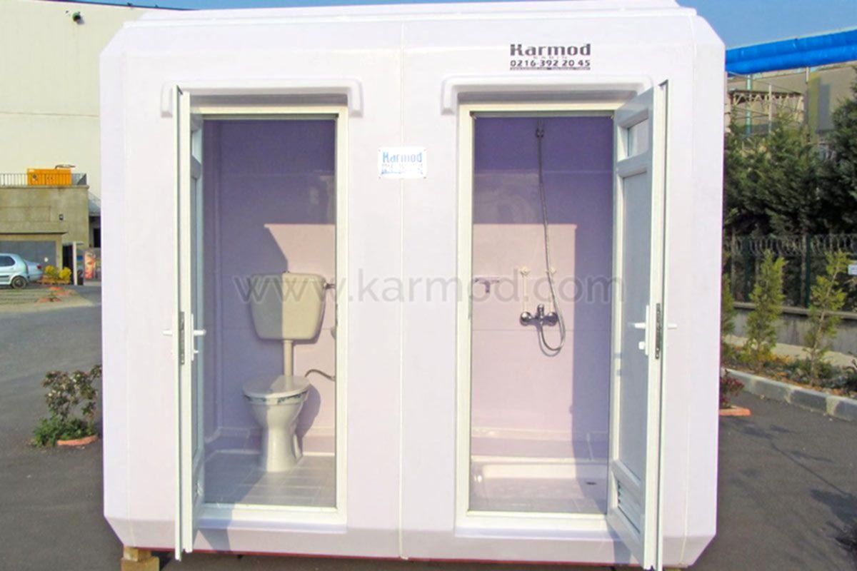 Özellikle şantiye ortamındaki seyyar WC ihtiyaçları için ünite içi çok fonksiyonlu hale getirilebilmektedir. Tek kabin içerisinde hem tuvalet hem de duş teknesi yerleştirilebilmektedir. Duş için batarya ekstra armatür olarak kullanıma hazır monte edilmektedir.
