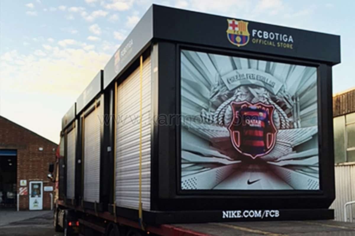 Proje kapsamında stor mağaza kullanımı amacıyla üretilen 3 adet yapı kulübün maçlarını oynağıdı Camp Nou stadyumu etrafına yerleştirildi. 270x270 ölçüde CTP kabin sisteminin kullanıldığı yapılar üzerinde üretim sonrası özel kaplama uygulamaları gerçekleştirildi. Dijital baskılı Barcelona stor mağaza kurumsalları yapı üzerine uygulanarak şık görünümü kavuşturuldu.