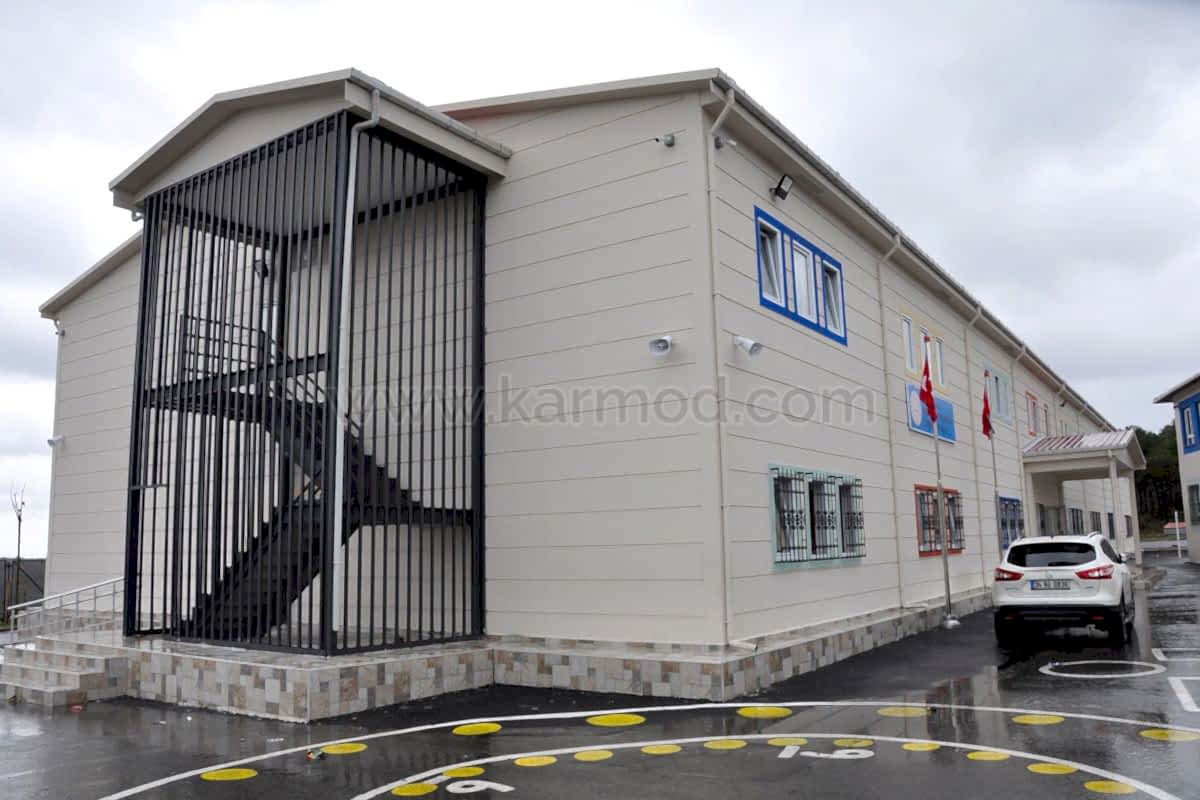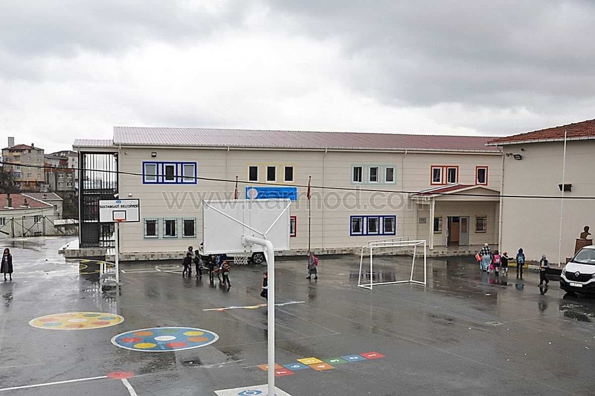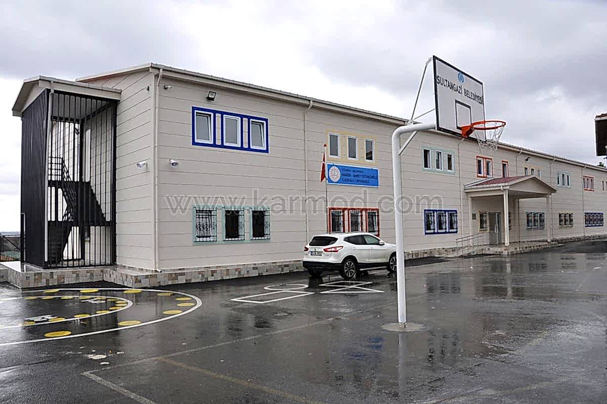 İstanbul’un Sultangazi ilçesi Yayla Mahallesinde inşa edilen bu okulda öğrenci ve öğretmenler deprem güvenliği yüksek bir binada eğitim görme coşkusunu yaşamaya başladılar. Yüksek yapı güvenliğine sahip okul binası Karmod uzmanlığıyla çelik konstrüksiyon sistemiyle projelendirildi. İyi organizasyonuyla yeni nesil yapı teknolojileri kullanılarak modern tesislerde ön üretimi gerçekleştirilen bin 960 metrekare büyüklükteki okul binası kurulum yapılmak üzere okul projesinin gerçekleştirileceği sahaya sevk edildi. Teknik ofis ve saha kurulum ekiplerimizin koordinasyonuyla 19 derslikli çelik okul binası 72 gün gibi rekor bir sürede iki katlı olarak kullanıma hazır inşa edildi.